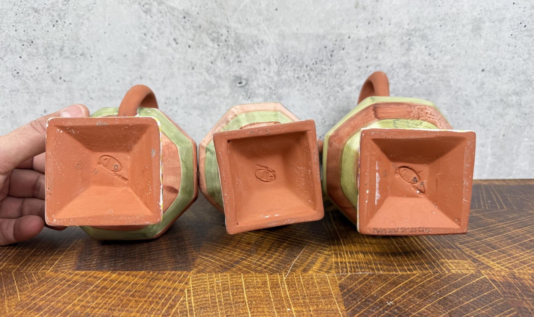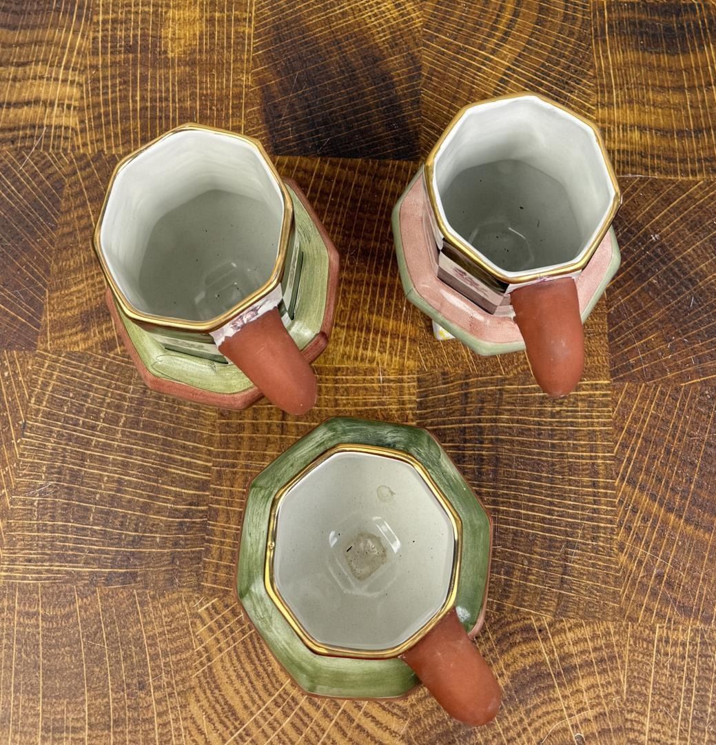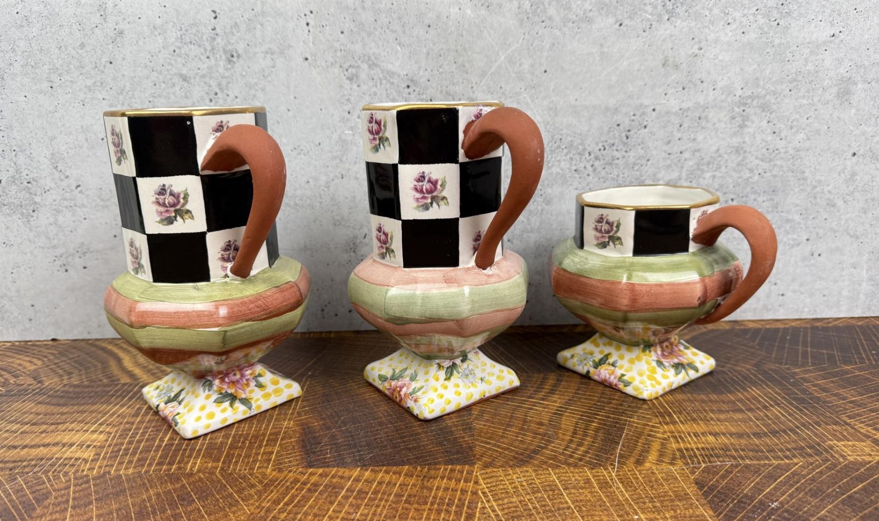 Taller cup is 6 1/4" tall, smaller cup is 4" tall