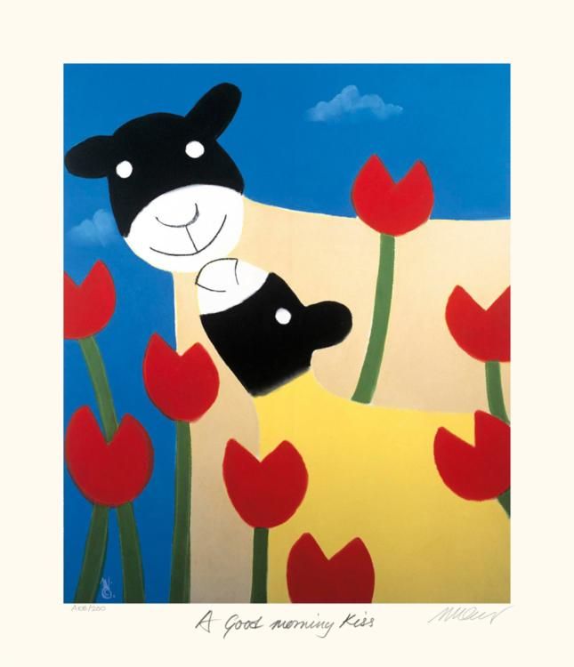Artist: Mackenzie ThorpeTitle: A Good Morning KissMedium: Lithograph on PaperOrientation: verticalImage Size: 14 x 17 inchesPaper Size: 18 x 21.5 inchesEdition Size: 200: Signed by the artist, individually numbered, accompanied by certificate of authenticity signed by the publisher.Biography * Internationally renowned artist Mackenzie Thorpe was raised in the industrial town of Middlesbrough in the 1950s, where his father worked as a laborer and his mother as an auxiliary nurse. Mackenzie acknowledges mixed emotions about this period in his life. He remembers the strong feeling of community spirit, the warmth and humor that flourished in the face of adversity, as well as the loneliness and isolation. * The need and compulsion to draw was obvious from an early age and remains with Mackenzie today. As a child, he would seek out whatever raw materials he could find, drawing on cigarette packs with stubs of pencils, or using eye-shadow and lipstick illicitly obtained from his mum's makeup bag. Struggling with dyslexia throughout his childhood, Mackenzie found confidence in painting and drawing. Unsurprisingly, he left school without formal qualifications, taking on a variety of manual, unskilled jobs while continuing to draw and paint. Mackenzie eventually got the courage to enter the local art college. His lack of education and a barely readable application did nothing to warrant support, but the strength and volume of work that Mackenzie presented, coupled with his enthusiasm and commitment, won him a place at the Middlesbrough College of Art and, subsequently, the Byam Shaw School of Art in London. * After leaving art school, he spent several years working with inner-city children in London before moving to North Yorkshire to set up a studio and gallery with his wife, Susan, and children, Owen and Chloe. Since then, he has become one today's most collected and sought-after artists. His works express an entire range of human emotion, from the special bond of love and friendship, to the importance of self-reflection and individual triumphs. His works are a tribute to the creativity within us all and are a vivid expression of hope and the human spirit. * Mackenzie's perspective on life is clear. He doesn't hide the fact that often life is a struggle, a dark tunnel which can seem endless. However, he passionately believes that our frail dreams are worth nurturing and that love and honesty will triumph over adversity. *