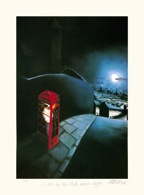 Artist: Mackenzie ThorpeTitle: Love by the Pale MoonlightMedium: Lithograph on PaperOrientation: verticalImage Size: 13.75 x 20 inchesPaper Size: 17.75 x 24.5 inchesEdition Size: 200: Signed by the artist, individually numbered, accompanied by certificate of authenticity signed by the publisher.BiographyInternationally renowned artist Mackenzie Thorpe was raised in the industrial town of Middlesbrough in the 1950s, where his father worked as a laborer and his mother as an auxiliary nurse. Mackenzie acknowledges mixed emotions about this period in his life. He remembers the strong feeling of community spirit, the warmth and humor that flourished in the face of adversity, as well as the loneliness and isolation. The need and compulsion to draw was obvious from an early age and remains with Mackenzie today. As a child, he would seek out whatever raw materials he could find, drawing on cigarette packs with stubs of pencils, or using eye-shadow and lipstick illicitly obtained from his mum's makeup bag. Struggling with dyslexia throughout his childhood, Mackenzie found confidence in painting and drawing. Unsurprisingly, he left school without formal qualifications, taking on a variety of manual, unskilled jobs while continuing to draw and paint. Mackenzie eventually got the courage to enter the local art college. His lack of education and a barely readable application did nothing to warrant support, but the strength and volume of work that Mackenzie presented, coupled with his enthusiasm and commitment, won him a place at the Middlesbrough College of Art and, subsequently, the Byam Shaw School of Art in London. After leaving art school, he spent several years working with inner-city children in London before moving to North Yorkshire to set up a studio and gallery with his wife, Susan, and children, Owen and Chloe. Since then, he has become one today's most collected and sought-after artists. His works express an entire range of human emotion, from the special bond of love and friendship, to the importance of self-reflection and individual triumphs. His works are a tribute to the creativity within us all and are a vivid expression of hope and the human spirit. Mackenzie's perspective on life is clear. He doesn't hide the fact that often life is a struggle, a dark tunnel which can seem endless. However, he passionately believes that our frail dreams are worth nurturing and that love and honesty will triumph over adversity.