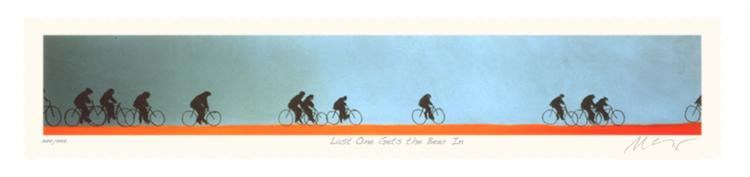 Artist: Mackenzie Thorpe Title: Last One Gets the Beer In Medium: Serigraph on paper Orientation: horizontal Image size: 48 x 8 inches Paper size: 62 x 13 inches Edition size: 195 Hand-deckled EdgesThis hand-pulled serigraph was printed on 100% cotton rag paper with hand-deckled edges and was created with exceptional fine art craftsmanship. It has been hand-signed and hand-titled by the artist and is accompanied by a certificate of authenticity, signed by the publisher.BiographyInternationally renowned artist Mackenzie Thorpe was raised in the industrial town of Middlesbrough in the 1950s. Struggling from dyslexia throughout his childhood, Mackenzie found confidence in painting and drawing and eventually summoned the courage to go to art school. After leaving art school, he spent several years working with inner-city children in London before moving to North Yorkshire to set up a studio, as well as his own gallery. Since then, he has become one of the world's most collected and sought-after artists. His art works have been exhibited in museums and galleries across 4 continents.About the Artist - "My ambition is to unite the world through the eyes of these children and let today's cultures understand that in order to sustain our societies, we must protect and nurture our children, and also protect and nurture the child within us all. It is our responsibility to love these children, to let them bring love back to the world, and to keep our eyes open to the wonderment of childhood." - Mackenzie Thorpe