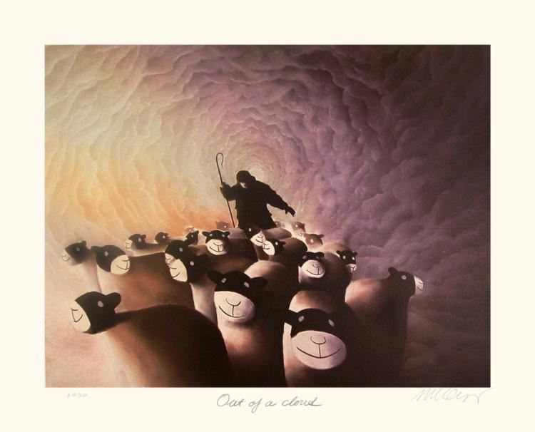 Artist: Mackenzie ThorpeTitle: Out of a CloudMedium: Lithograph on PaperOrientation: horizontalImage Size: 20 x 15.25 inchesPaper Size: 24 x 19.75 inchesEdition Size: 200: Signed by the artist, individually numbered, accompanied by certificate of authenticity signed by the publisher.BiographyInternationally renowned artist Mackenzie Thorpe was raised in the industrial town of Middlesbrough in the 1950s, where his father worked as a laborer and his mother as an auxiliary nurse. Mackenzie acknowledges mixed emotions about this period in his life. He remembers the strong feeling of community spirit, the warmth and humor that flourished in the face of adversity, as well as the loneliness and isolation. The need and compulsion to draw was obvious from an early age and remains with Mackenzie today. As a child, he would seek out whatever raw materials he could find, drawing on cigarette packs with stubs of pencils, or using eye-shadow and lipstick illicitly obtained from his mum's makeup bag. Struggling with dyslexia throughout his childhood, Mackenzie found confidence in painting and drawing. Unsurprisingly, he left school without formal qualifications, taking on a variety of manual, unskilled jobs while continuing to draw and paint. Mackenzie eventually got the courage to enter the local art college. His lack of education and a barely readable application did nothing to warrant support, but the strength and volume of work that Mackenzie presented, coupled with his enthusiasm and commitment, won him a place at the Middlesbrough College of Art and, subsequently, the Byam Shaw School of Art in London. After leaving art school, he spent several years working with inner-city children in London before moving to North Yorkshire to set up a studio and gallery with his wife, Susan, and children, Owen and Chloe. Since then, he has become one today's most collected and sought-after artists. His works express an entire range of human emotion, from the special bond of love and friendship, to the importance of self-reflection and individual triumphs. His works are a tribute to the creativity within us all and are a vivid expression of hope and the human spirit. Mackenzie's perspective on life is clear. He doesn't hide the fact that often life is a struggle, a dark tunnel which can seem endless. However, he passionately believes that our frail dreams are worth nurturing and that love and honesty will triumph over adversity.