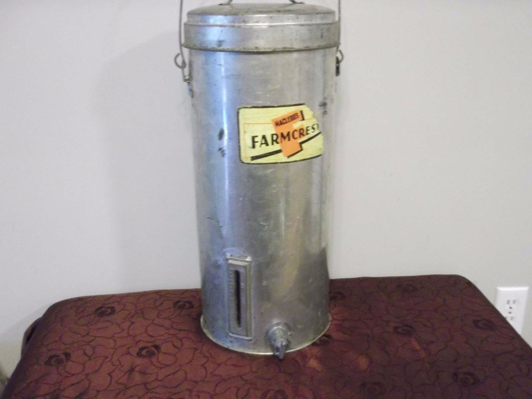 Macleods "Farmcrest" Antique Cream Separator Can, W/ Window, Spout, Label