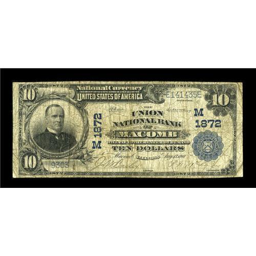 <B>Macomb, IL</B></I> - $10 1902 Plain Back Fr. 628 <B>The Union NB</B></I> Ch. # (M)1872<BR>Pleasing pen signatures still remain on this note that survived much time in commerce. <B>Very Good.</B></I><BR><I>From The Lincoln Collection</B></I><BR><BR><b>Shipping:</b> Coins & Currency (<a target="_blank" href="http://www.heritageauctions.com/common/shipping.php">view shipping information</a>)