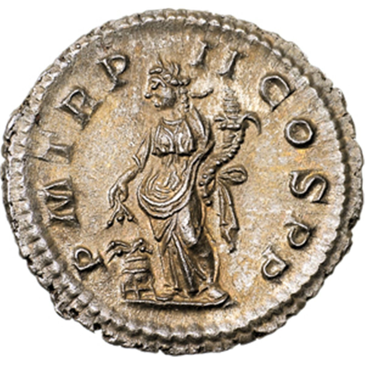 Impero Romano. Macrino (217-218). Denario. D/ IMP C M OPEL SEV MACRINVS AVG. Busto laureato, drappeggiato e corazzato a destra. R/ PM TR P II COS PP. Annona, stante a sinistra, tiene spighe di grano e cornucopia. Ai suoi piedi, modio pieno di spighe. RIC 26. AG. g. 2.80 mm. 19.00 R. SPL/SPL+. Di stile straordinario ed eccezionale qualitv†. Incantevole delicata patina dai riflessi dorati.