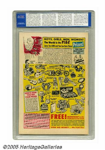 50. Auctioneer offers no opinion as to the validity of a grade assigned by any third-party grading service. Since we cannot examine C.G.A. encapsulated notes or Comics Guaranty Corporation (CGC) encapsulated comics, they are sold "as is" without our grading opinion, and may not be returned for any reason. Auctioneer shall not be liable for any patent or latent defect or controversy pertaining to or arising from any encapsulated collectible. In any such instance, purchaser's remedy, if any, shall be solely against the certification service certifying the collectible.