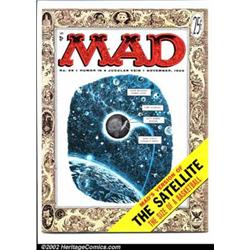 Mad #26 Gaines File pedigree (EC, 1955). Gorgeous copy. Art by Wood, Davis and Elder. A photo-certificate attesting to the Gaines File pedigree will be issued to the buyer of this lot. Overstreet 2001 NM 9.4 value = $320. Important notice: We expect to be auctioning lots at the rate of 200-250 per hour. Sometimes eBay Premier live bid software cannot keep up with that pace, so we strongly recommend that you place a realistic proxy bid now as insurance to avoid disappointment. Also please note that all Heritage/CAA lots purchased through eBay Premier carry a 20% Buyer's Premium.