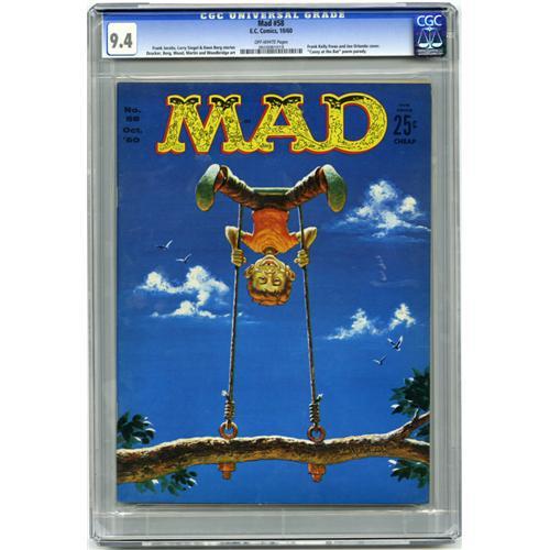 <B>Mad #58 (EC, 1960) CGC NM 9.4 Off-white pages.</B></I> Kelly Freas cover. Joe Orlando back cover. Mort Drucker, Dave Berg, Wally Wood, Don Martin, and George Woodbridge art. Overstreet 2006 NM- 9.2 value = $150. CGC census 4/06: 2 in 9.4, 3 higher.
