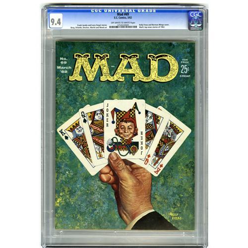 <B>Mad #69 (EC, 1962) CGC NM 9.4 Off-white to white pages.</B></I> Kelly Freas cover. Wally Wood, Dave Berg, Joe Orlando, Mort Drucker, and Don Martin art. Overstreet 2006 NM- 9.2 value = $110. CGC census 4/06: 2 in 9.4, 2 higher.
