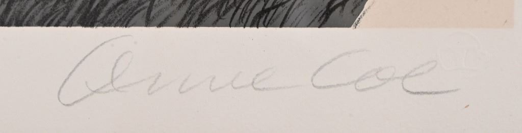 Signed lower right by artist Anne Coe, limited edition 108/125. Frame measures 33" x 37.5" From the personal collection of Bud Shrake