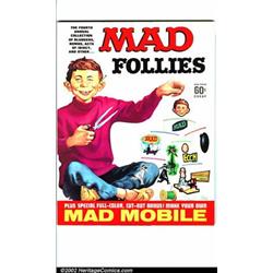 Mad Follies #4 Gaines File pedigree (EC, 1966). Ringo Starr by Frazetta. A photo-certificate attesting to the Gaines File pedigree will be issued to the buyer of this lot. Overstreet 2001 NM 9.4 value = $120.  Important notice: We expect to be auctioning lots at the rate of 200-250 per hour. Sometimes eBay Premier live bid software cannot keep up with that pace, so we strongly recommend that you place a realistic proxy bid now as insurance to avoid disappointment. Also please note that all Heritage/CAA lots purchased through eBay Premier carry a 20% Buyer's Premium.