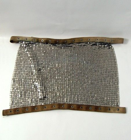 No one had ever seen a film like George Miller's "Mad Max" (1979) when it first made its way from "down under" to the States. The sparse landscape apocalyptic world of uncontrolled and unruly violence is now common place in films, but at the time, it left audiences with their jaws open and their eyes popping out! And in fact, it was such a "homeland" original, that all the character's voices had to be redubbed (including a young Mel Gibson) so we could understand what they were saying over the ultra-violence. This is a piece of "homemade" chainmail armor from the movie. (Approx. 19" x 16").