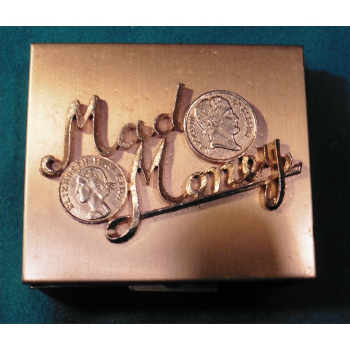 “Mad Money” Small Coin-holder Jewelry Box with raised gold-lettering and coin design in case.