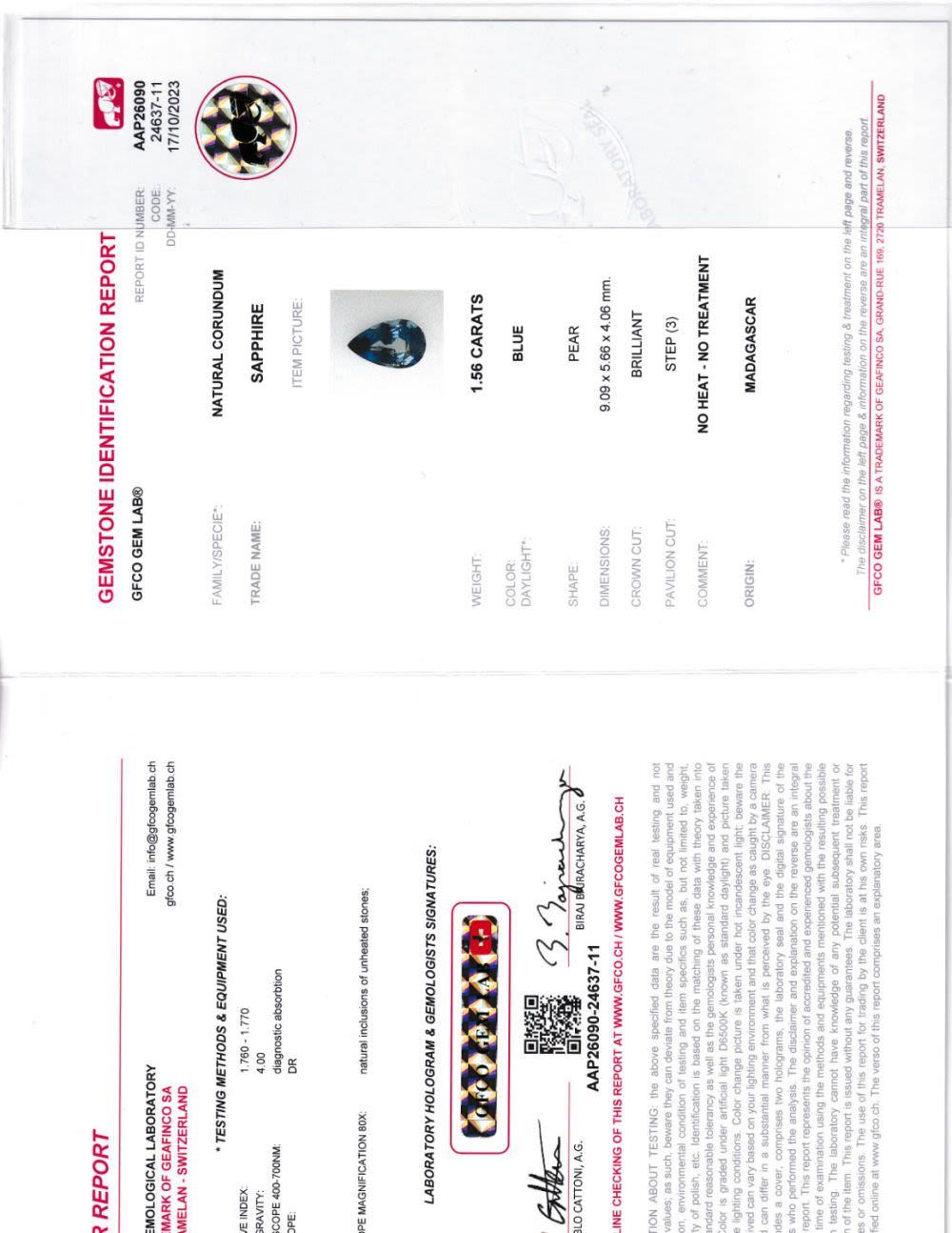 CERTIFICATION REPORT: The GFCO GemLab report, shown in the photos, is included with this ring.