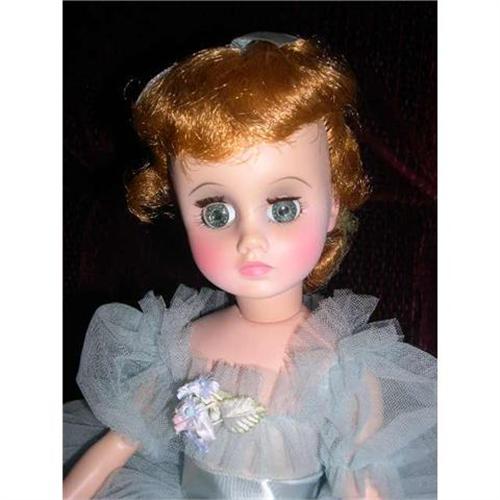 This is Elsie made by the Madame Alexander Doll Co. I'm not sure if she is from the 1970's or earlier. She has a very hard face and body. It's vinyl but very hard. She is dressed in a blue net formal. The dress is tagged. She is all complete and has never been displayed.The box says style 1650. Her shoes, nylons, panties, slip, etc. are all nice and crispy. She's from a smoke free environment. She's never been displayed. Buyer to pay $30 for U.S. shipping, insurance, and handling. If you can love her, please bid. Thanks for viewing.