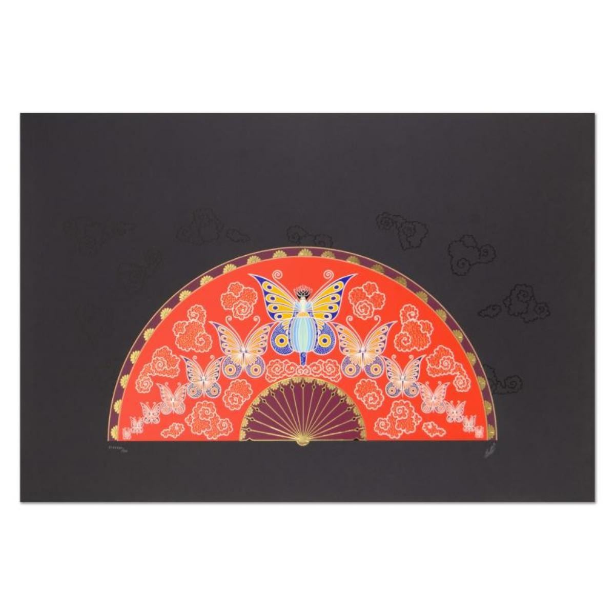 Madame Butterfly by Erte (1892-1990). "Madame Butterfly" is a limited edition serigraph on paper by Erte (1892-1990), numbered and hand signed by the artist. Includes Certificate of Authenticity. Measures approx. 41" x 28" (border), 36" x 18" (image). Due to the age of this piece and the delicate nature of the paper it may have some slight imperfections.