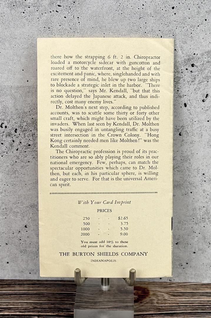 Frank J. Molthen. Chiropractor is Hero of Hong Kong. The Burton Shields Company.