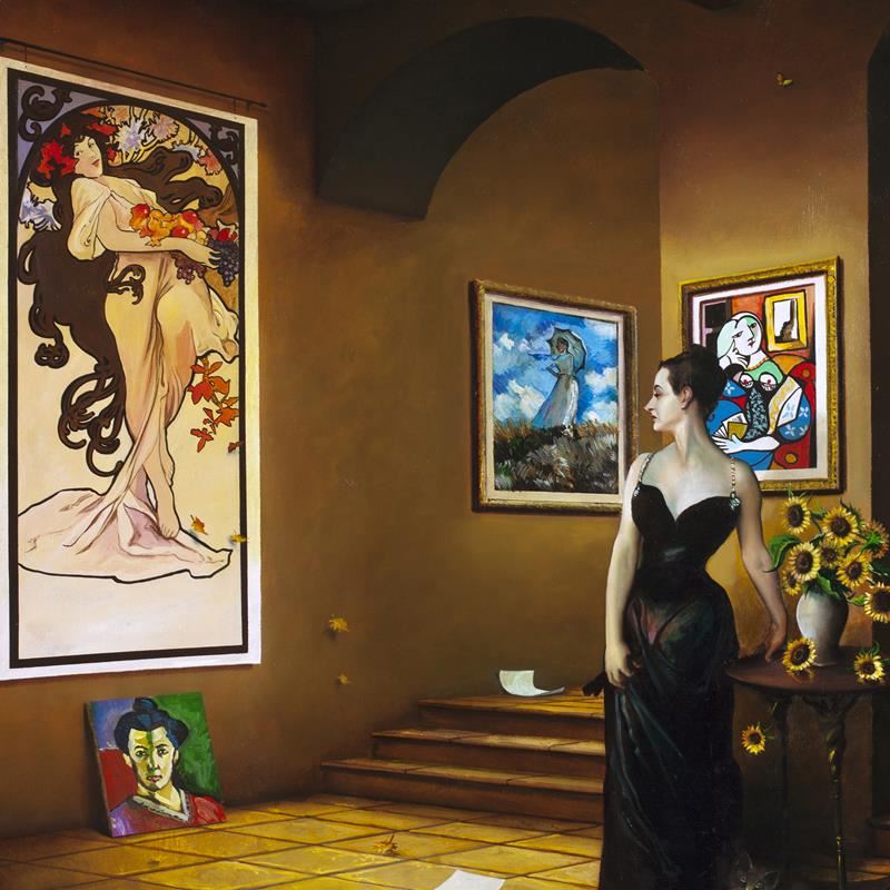 "Madame X" is an original acrylic painting on canvas by Orlando Quevedo, hand signed by the artist. Includes a Certificate of Authenticity. Measures approximately 44.5" x 33.5".