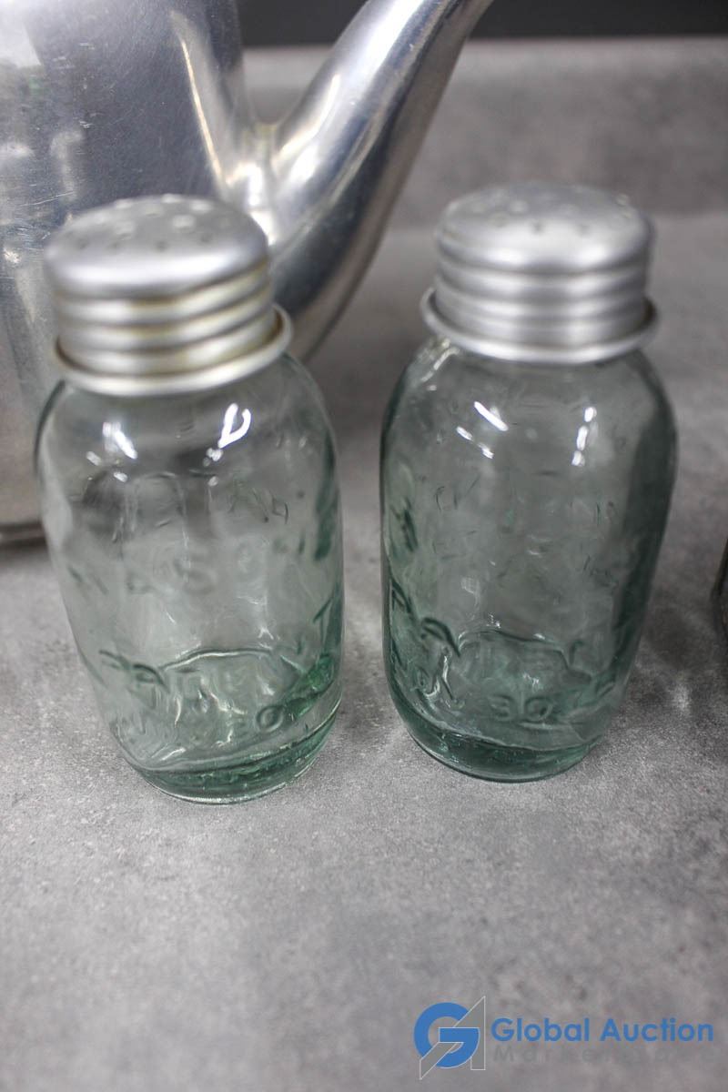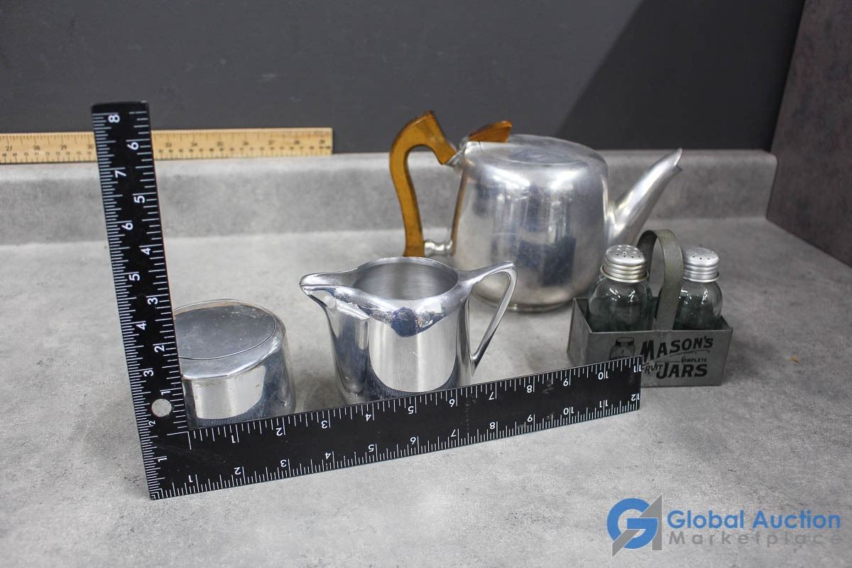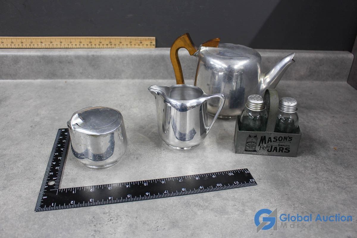 Made in England Silver Tea Set, & Salt & Pepper Shaker Set