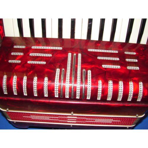 12/bass/25. 13"x13 1/2" x7 1/2". Red Marbelized case with chrome accents. New Condition.