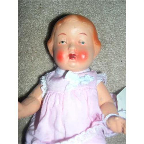 This is an all bisque 7" baby that is incised on the back Made in Occupied Japan. She has molded hair and is a painted bisque cutie! She has the moveable arms and legs.There are no missing fingers. She has been restrung. There are no cracks or chips in the bisque. She has very rosie cheeks. There is one cratch lilne on one cheek. I'm sure she was dressed somewhere along the line. She is from a smoke free environment. Buyer to pay $10 for U.S. shipping, insurance, and handling. If you can love her,please bid. Thanks for viewing.