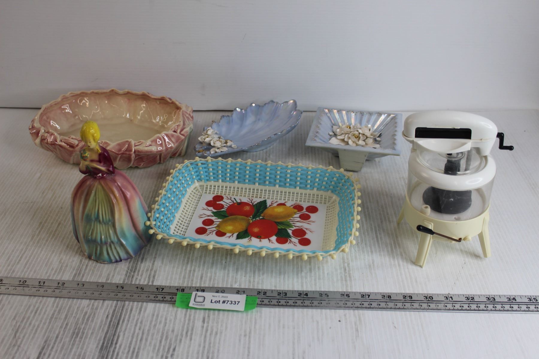 Madeleine Dish, Fruit Basket, Chalkware Figurine - Some Damage, Misc.
