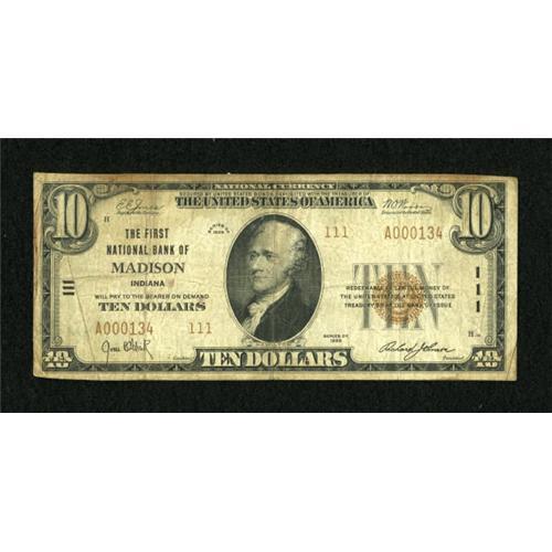 Madison, IN - $10 1929 Ty. 2 The First NB Ch. #