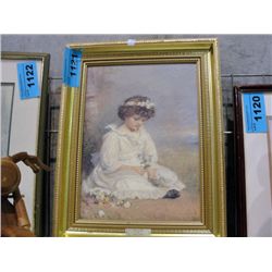Framed darling blue transfer print on board