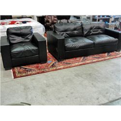 2pc black leather sofa and chair set