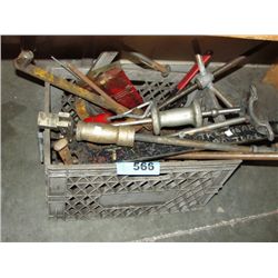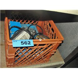 Milk crate of assorted hardware