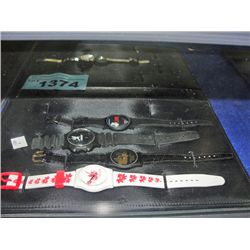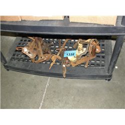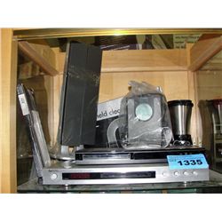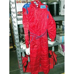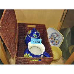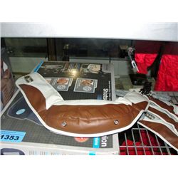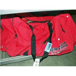 bag with contents; 5 vintage bowling pins and 5pin bowling ball