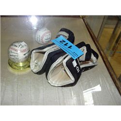 Pair of hockey gloves and 2 signed baseballs112 - Pair of hockey gloves and 2 signed baseballs