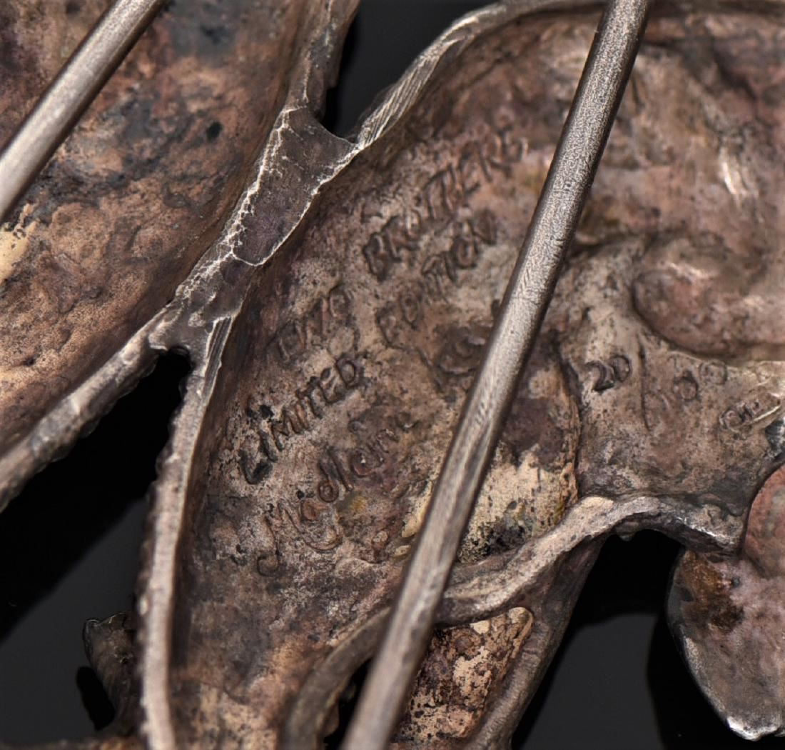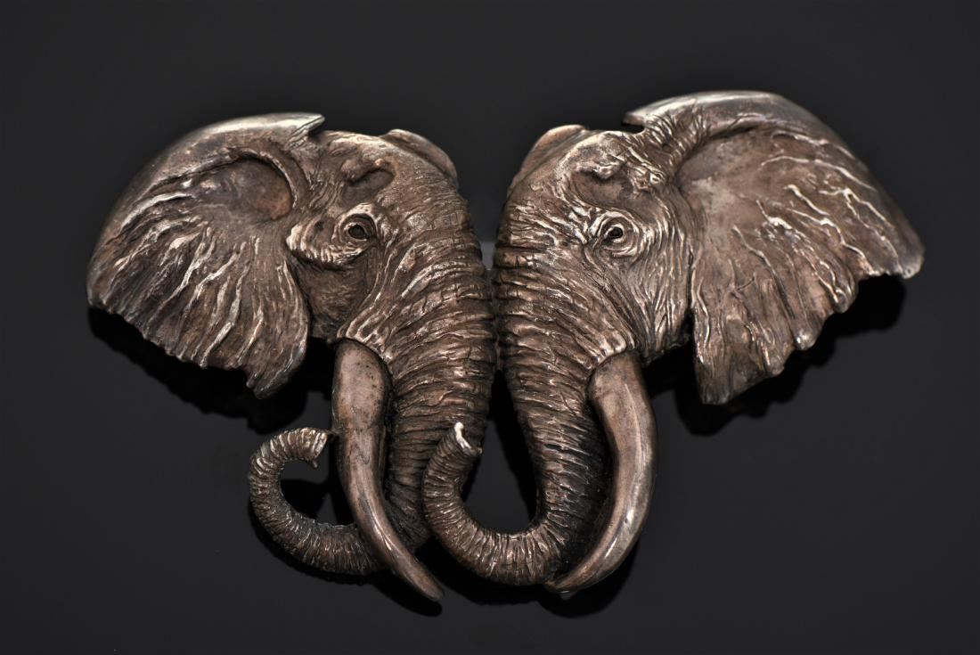 Madleine Kay, Two Brothers Limited Addition Sterling Silver Belt Buckle Of Two Elephants, numbered 20 of 100. Weight 8.25 ounces. Estimated more than 50 yrs old. 925 Sterling Silver consisting of 92.5% silver and 7.5% copper. Tested Positive using Nitric Acid Chemical Scratch Test, Cloth Rub Test, Smell Test, and Magnet Test. Markings of 925 or Sterling stamp. The reason silver needs to be combined with other metals is that it is very difficult to make great designs with just pure silver, which is very soft and malleable. A bit of hardness has to be introduced by adding other metals such as copper. That is why jewelers are capable of making the most intricate an complex designs with 925 Sterling Silver. Silver is one of the most valuable elements next to gold. Mexico is the leading producer of sliver, followed by the United States, Canada, Australia, Spain, Peru, and Russia. Many countries do not require their precious metal items to be stamped and therefore we test to ensure we accurately represent the product. Size and/or Weight: See Measurement Photo. (Photos Represent The Lot Condition.)