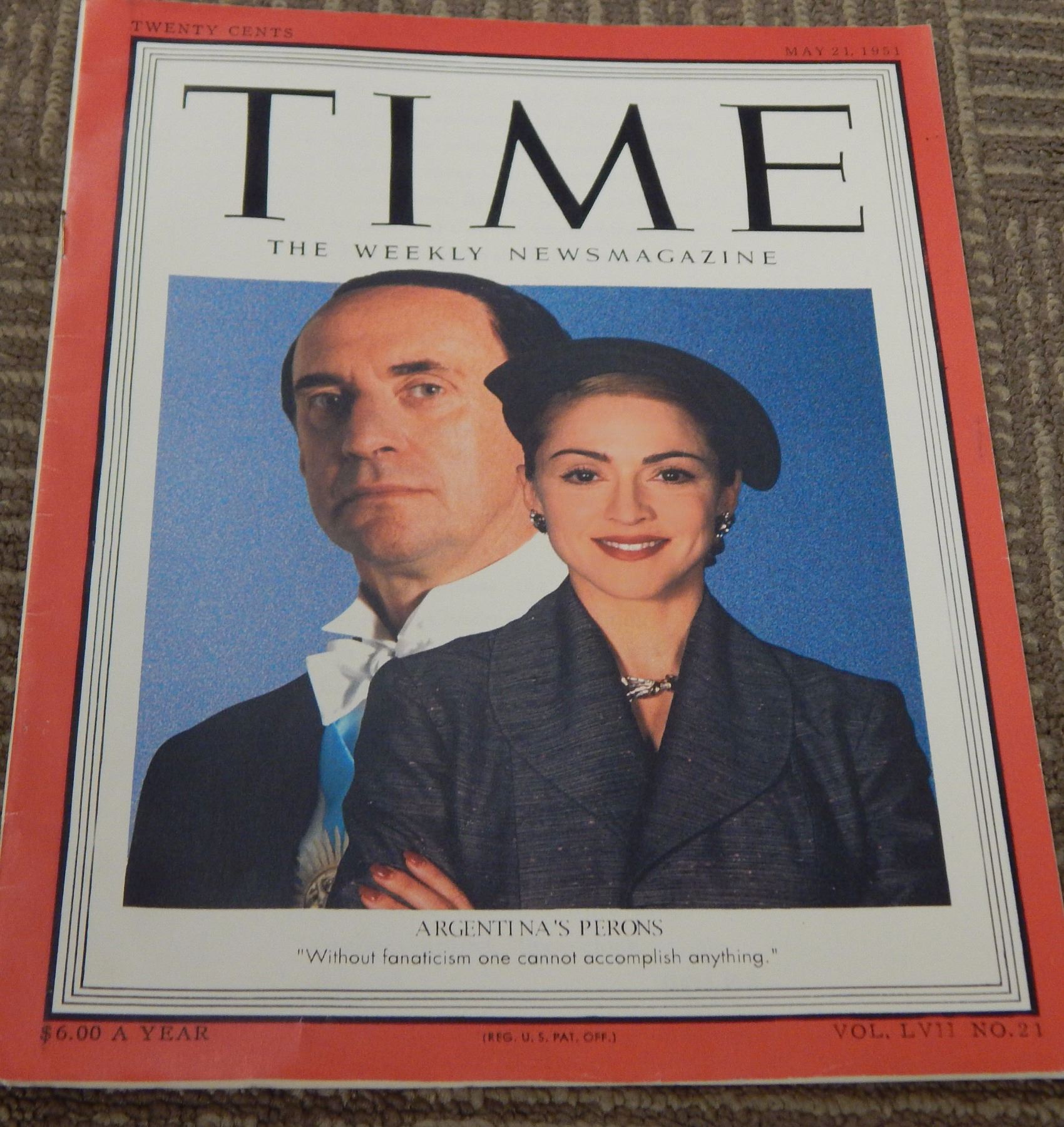 Original prop Time Magazine featuring Madonna on the cover in her role as Eva Peron in the film Evita. All items come with a certificate of authenticity good for the life of the piece.