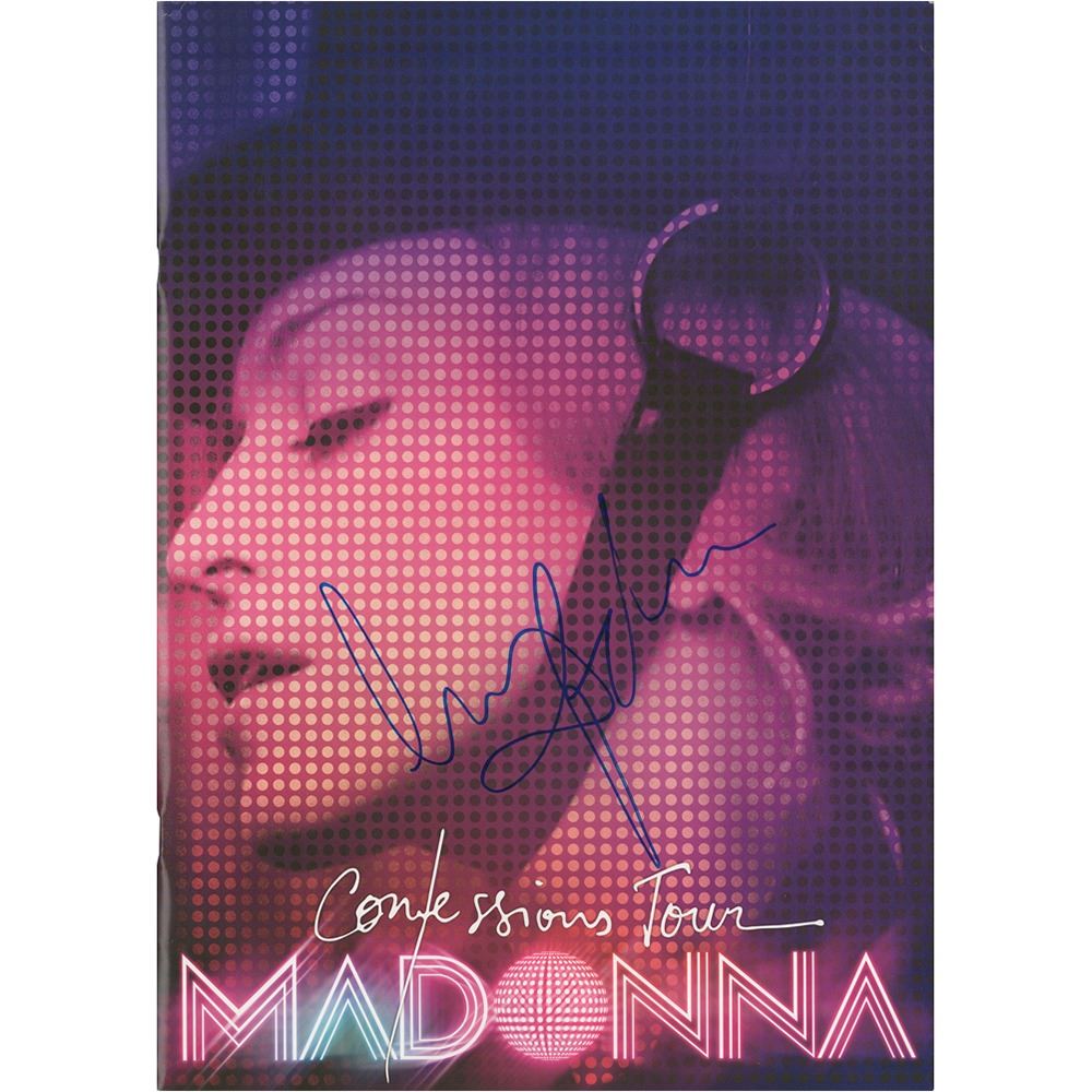 Official tour book for Madonna's 2006 Confessions World Tour, 52 pages, 9.25 x 13.25, signed on the front cover in blue felt tip, "Love, Madonna." In fine condition.