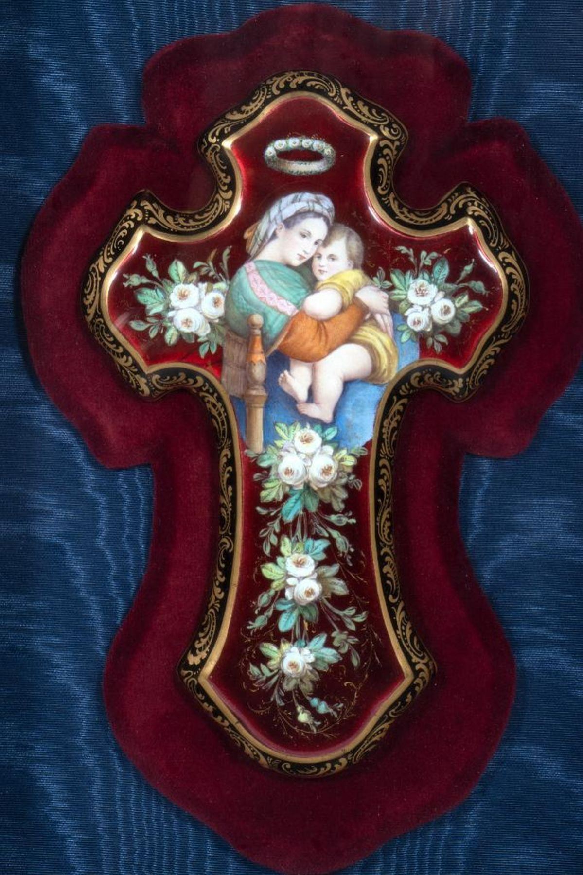 The gilt-embellished cross set on red velvet and mounted in a gilt frame shadow box (14 3/4in. x 109 3/4in). Cross approximately 9in. x 5 1/4in.