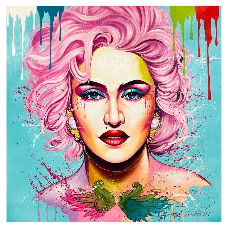 "Madonna" is an original acrylic painting on canvas by Alexander Ishchenko, hand signed by the artist. Includes Letter of Authenticity. Measures approx. 36" x 36" (image).