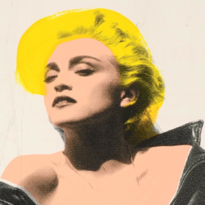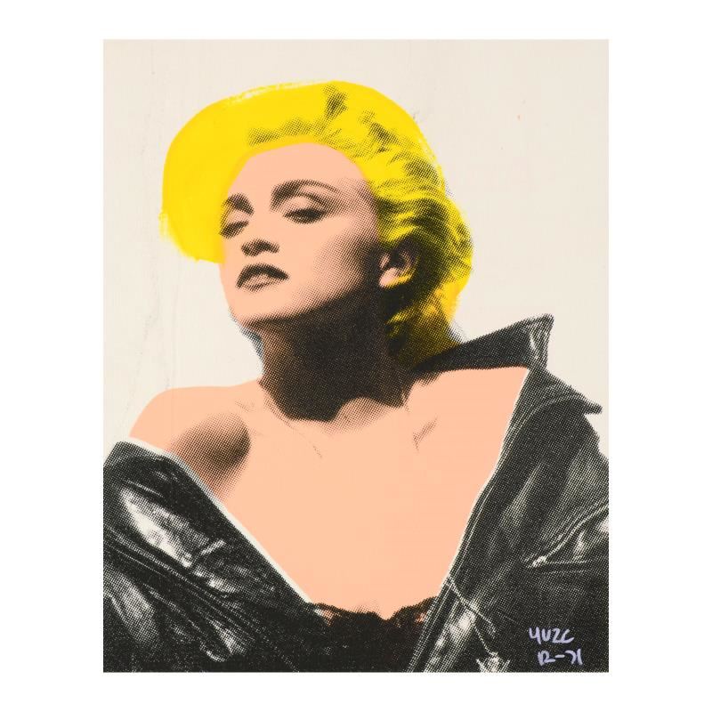 "Madonna in Leather" is a one-of-a-kind hand-pulled silkscreen and mixed media painting on canvas by Ringo (Daniel Funes) - protege of Andy Warhol's apprentice, Steve Kaufman! This piece is hand signed by the artist and Includes Certificate of Authenticit