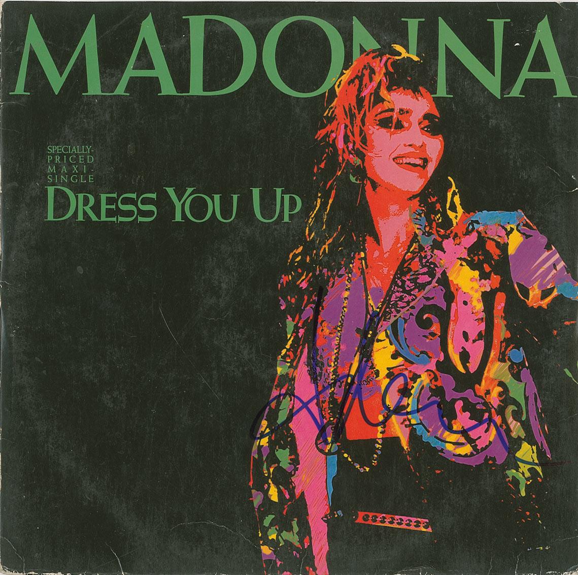 Dress You Up maxi-single album signed on the front cover in blue felt tip. In fine condition, with some scattered edge creases and light contrast to signature. The record is included.