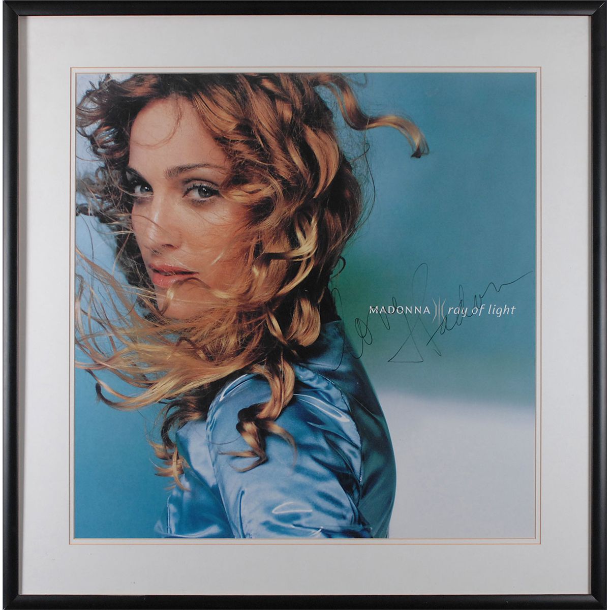 Color 23.5 x 23.5 promotional poster for Ray of Light, signed in black felt tip. Poster is professionally mounted and double-matted and framed to an overall size of 30.75 x 30.75. In fine condition, with a crease to top right corner. Accompanied by a letter of authenticity from Rockaway Records.