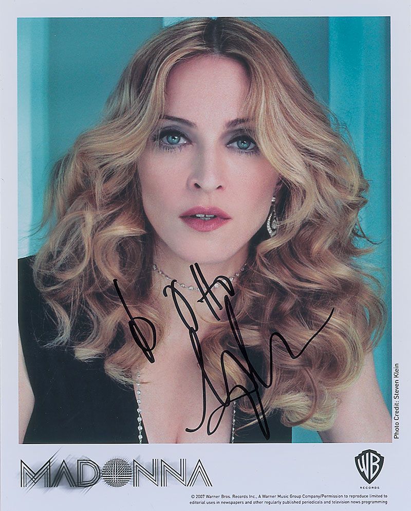 Lovely color glossy 8 x 10 Warner Bros. publicity photo of Madonna, signed and inscribed in black felt tip. In fine condition.