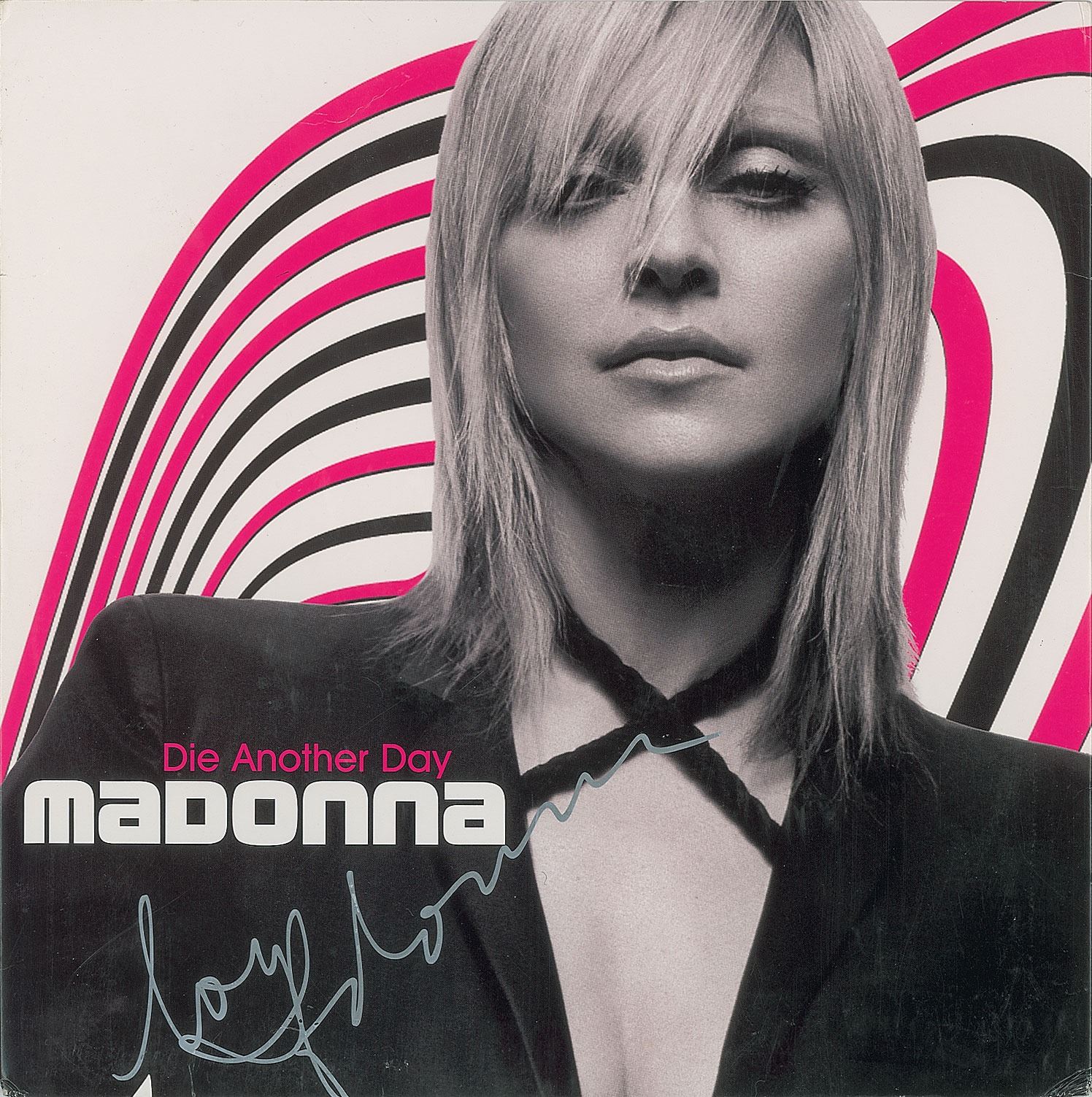 Die Another Day single album signed on the front cover in silver ink, "Love, Madonna." In fine condition. The record is not included.