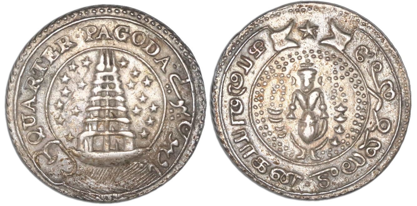 Madras, India, 1/4 pagoda, no date (1808), garter, eighteen stars, NGC XF 45.