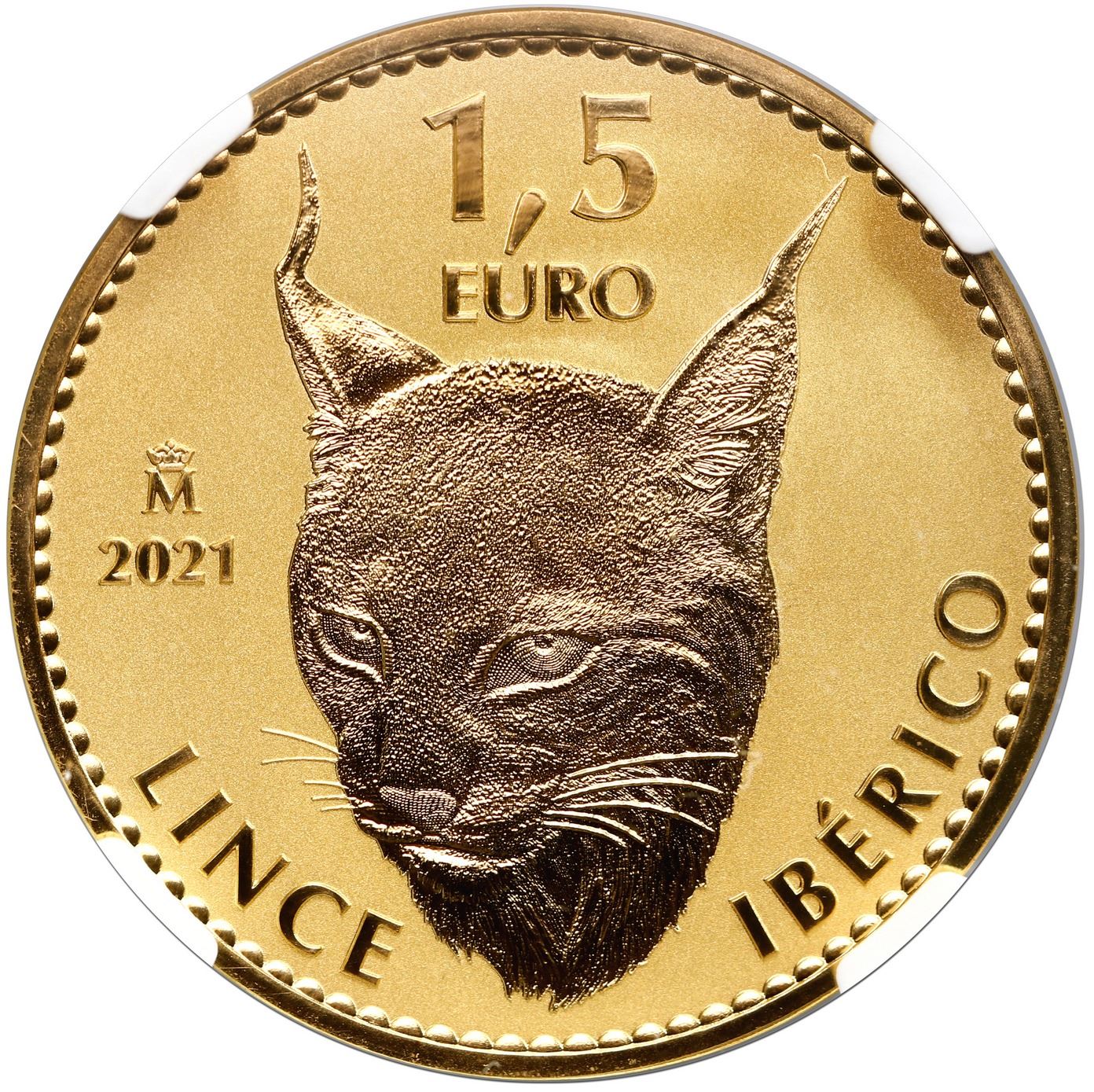 Madrid, Spain, gold reverse proof 1.5 euros (1 oz), 2021, Iberian lynx, NGC Reverse PF 70 ('top pop"
