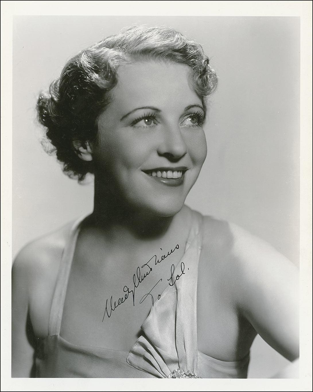 Austrian actress (1892–1951) who achieved success in the United States in films like Heidi, until she was blacklisted during the McCarthy period. Vintage pearl-finish 8 x 10 double weight MGM Clarence Sinclair Bull publicity photo, signed and inscribed in fountain pen “Mady Christians to Sol [sic].” Reverse of photo bears collector’s stamp date of February 15, 1936, the date the signature was acquired. In fine condition, with a light horizontal bend through forehead area. Saul Goodman Collection.