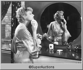 Mae Clarke from The Max Factor Collection / (1) 10 x 8 Nitrate Negative of Mae Clarke Posing with Face Powder and an Assortment of Max Factor Make-Up