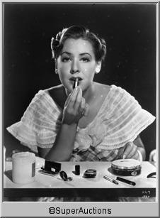 Mae Clarke from The Max Factor Collection / (1) 8 x 10 Nitrate Negative No. 267-1920 of Mae Clarke Posing with Lipstick and an Assortment of Max Factor Make-Up