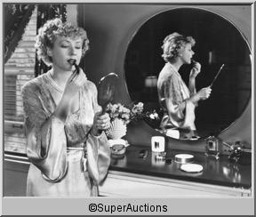Mae Clarke from The Max Factor Collection / (1) 10 x 8 Nitrate Negative No. C-13 of Mae Mae Clarke Posing with Lipstick and an Assortment of Max Factor Make-Up