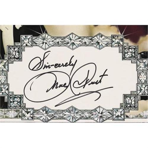 <B>Mae West Signed Poster (Nostalgia Merchant, 1978).</B></I> A renowned actress, comedienne, and singer, Mae West was also one of the grandest and most controversial sex symbols of the Golden Age of Hollywood. This 24" x 30" commemorative poster is inscribed "Sincerely, Mae West" in black marker near the bottom, and is in Fine condition with some heavy soiling and creasing along the left edge. It is number 1,417 in a limited edition of 2,000. <I>Accompanied by a certificate of authenticity from The Nostalgia Merchant.</B></I> <I>Accompanied by LOA from PSA/DNA.</B></I><BR><BR><b>Shipping:</b> Flat Material, Large (<a target="_blank" href="http://www.heritageauctions.com/common/shipping.php">view shipping information</a>)