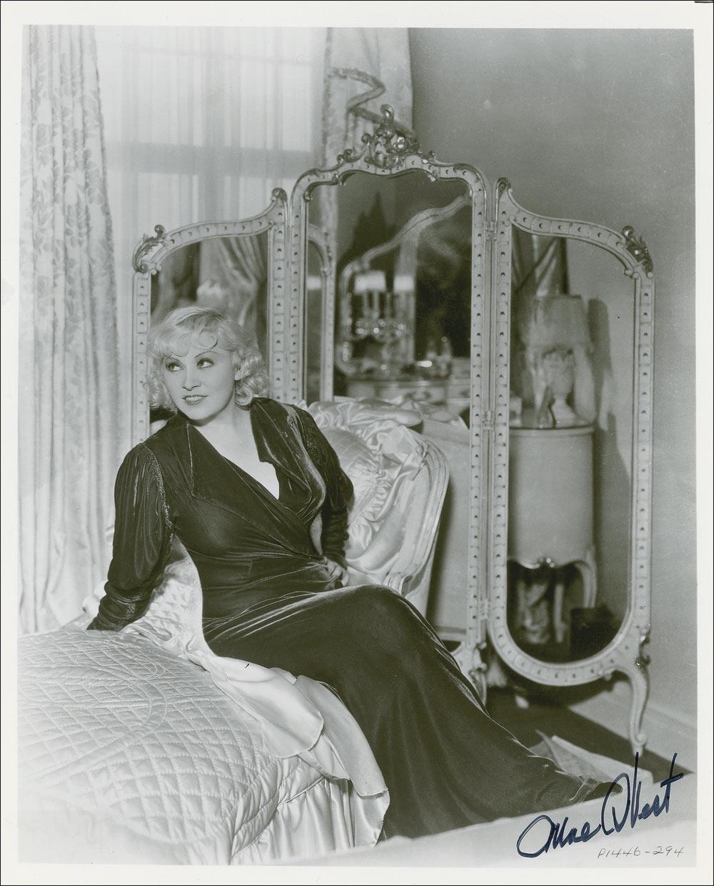 Glossy 8 x 10 photo of West relaxing in her changing room, signed in black felt tip. In fine condition.