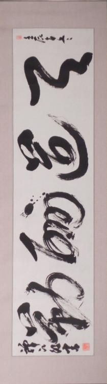 This is an original Chinese Calligraphy Scroll, hand painted by master artist Maestro Tanjianji. * This piece displays the artist's energetic brushstrokes. * * Artist: Tanjianji * Medium: Black paint on paper scroll * Presentation: Tan floral pattern textured border * Paper size: 18 x 64 inches * Markings: Two red character stamps * Condition: Very good; some minor wrinkle marks * Biography: * * Tanjianji was born in lianyuan Hunan province in 1964 , graduated from ChongQing University in 1988 and got Master Degree . Vice Chairman of China Art Celebrity * Association, honorary president of the International Famous chinese Calligrapher Exchange Show Association , Academician of China Painting and Calligraphy Academy. He * got following title of honour : International Painting and chinese Calligraphy Maestro,The Chinese calligraphy top ,One of the world's most influential Chinese calligraphic works and paintings , Famous contemporary artist,Poetry leader . * His opus got: special awards of chinese contemporary artists exhibition, special awards of wind of china" International Painting and chinese Calligraphy Contest and other Painting and chinese Calligraphy National Contest Gold Medal 91 times, the first award 18times.On the china biggest art web site "Tanjianji chinese Calligraphy "have been watched total 2108000 times!(you can enter follow site to check (http://blog.artron.net/space.php?uid=569483 )His original creation of "Dragon long life" calligraphy got gold medal of Famous chinese Calligrapher art treasure International Show His opus was 109 Times collected by Fashion Contest Show reel such as <china famous="" contemporary="" artist="" classics="" leido=""> . * His Ink Abstract painting has been in The exhibition Louvre, France . * His opus is Evaluated at USD9000 per square chi(equal USD10800 per square foot) in international market by China Famous contemporary artist evaluation association(See attach ) . His opus was aucted by USA Amauction, Inc.,Canada IEGOR auction, Hong Kong Chaters auction limited and one of the biggest aucton co.in china ----Jian Su wanda auction co. etc. * His opus are collected by the world collector,and the big co. president in the world</china> *